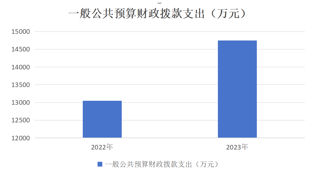 2023年度一般公共预算财政拨款支出14748.17万元,占本年支出合计的37.54%。与2022年度相比,一般公共预算财政拨款支出增加1700.58万元,增长11.53%。主要变动原因是社会保障和就业支出增加、卫生健康支出增加等原因。