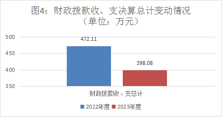 2023年度财政拨款收、支总计均为398.08万元。与2022年度相比,财政拨款收、支总计各减少74.03万元,下降18.6%。主要变动原因是项目减少。