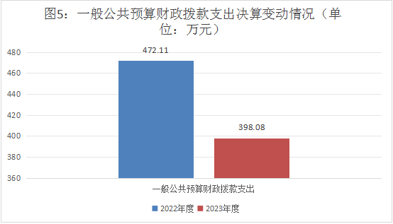2023年度一般公共预算财政拨款支出398.08万元,占本年支出合计的100%。与2022年度相比,一般公共预算财政拨款支出减少74.03万元,下降18.6%。主要变动原因是项目减少。