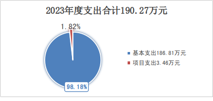 2023年度本年支出合计190.27万元,其中:基本支出186.81万元,占98.18%;项目支出3.46万元,占1.82%。