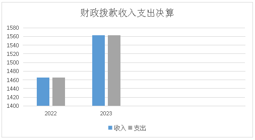 2023年度财政拨款收、支总计均为1562.21万元。与2022年度相比,财政拨款收、支总计各增加96.5万元,增长6.58%。主要变动原因是人员变动、项目支出增加。
