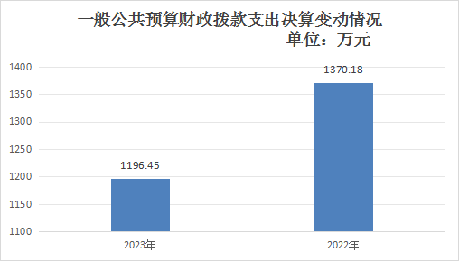 2023年度一般公共预算财政拨款支出1196.45万元,占本年支出合计的99.7%。与2022年度相比,一般公共预算财政拨款支出减少173.73万元,下降12.68%。主要变动原因一是人员变化,二是本年度预算内项目支出减少。