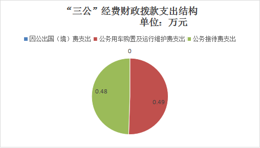 2023年度“三公”经费财政拨款支出决算中,因公出国(境)费支出决算0万元,占0%;公务用车购置及运行维护费支出决算0.49万元,占50.5%;公务接待费支出决算0.48万元,占49.5%。具体情况如下: