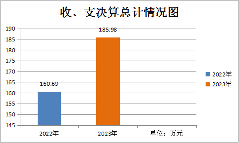 2023年度收入186.05万元、支出185.98万元。与2022年度相比,收入160.69万元,增加25.46万元,支出160.69万元,与2022年相比总计各增加25.29万元,增长15.78%。主要变动原因是人员工资调标及本年项目资金。