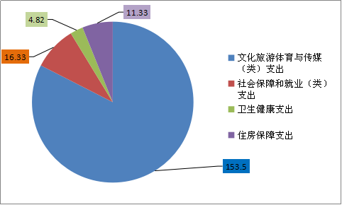 2023年度一般公共预算财政拨款支出185.98万元,主要用于以下方面:一般公共服务支出0万元,占0%;教育支出0万元,占0%;科学技术支出0万元,占0%;文化旅游体育与传媒支出153.50万元,占82.5%;社会保障和就业支出16.33万元,占8.8%;卫生健康支出4.82万元,占2.6%;住房保障支出11.33万元,占6.1%;主要用于人员工资及保险。
