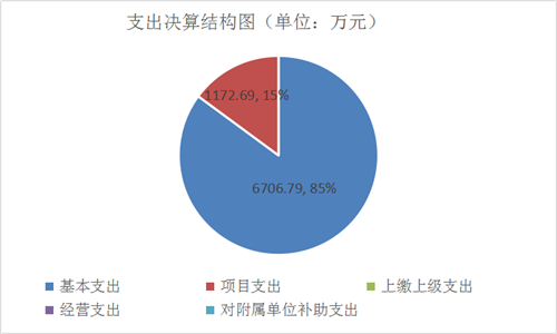 2023年度本年支出合计7879.48万元,其中:基本支出6706.79万元,占85%;项目支出1172.69万元,占15%。
