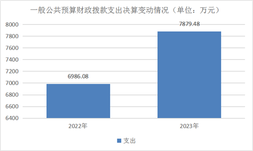 2023年度一般公共预算支出决算数为7879.48万元,完成预算97%。其中: