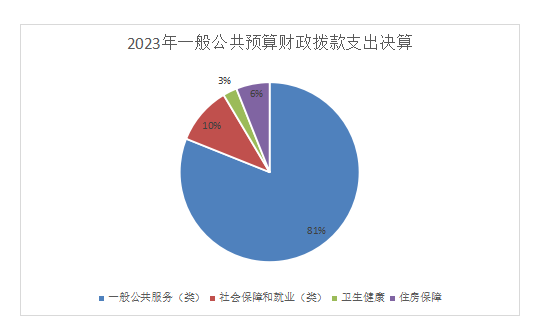 2023年度一般公共预算财政拨款支出584.56万元,主要用于以下方面:一般公共服务支出473.83万元,占81.06%;教育支出0万元,占0%;科学技术支出0万元,占0%;文化旅游体育与传媒支出0万元,占0%;社会保障和就业支出60.74万元,占10.39%;卫生健康支出14.76万元,占2.52%;住房保障支出35.23万元,占6.03%。