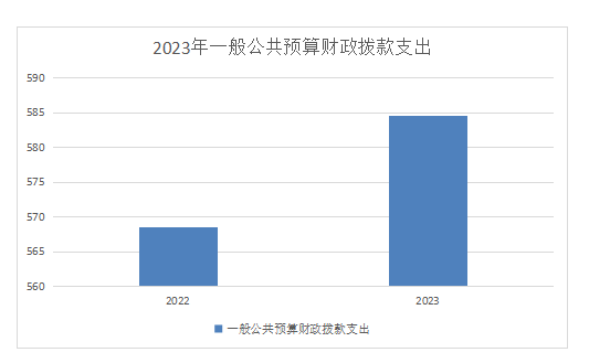 2023年度一般公共预算支出决算数为584.56,完成预算100%。其中: