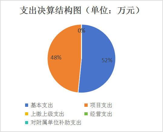 2023年度本年支出合计463.08万元,其中:基本支出238.88万元,占比51.6%;项目支出224.19万元,占48.4%;上缴上级支出0万元,占0%;经营支出0万元,占0%;对附属单位补助支出0万元,占0%。
