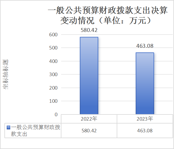 2023年度一般公共预算财政拨款支出463.08万元,占本年支出合计的100%。与2022年度相比,一般公共预算财政拨款支出减少117.34万元,下降20.2%。主要变动原因是本年项目资金支出减少。