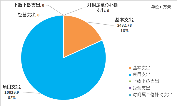 2023年度本年支出合计13362.68万元,其中:基本支出2432.78万元,占18%;项目支出10929.9万元,占82%;上缴上级支出0万元,占0%;经营支出0万元,占0%;对附属单位补助支出0万元,占0%。