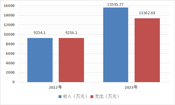 2023年度收入总计为15595.77万元,与2022年度相比收入总计增加6341.67万元,增长68.5%,2023年总支出13362.68万元,比2022年度增加4108.58万元,同比增长44.4%,主要变动原因是年中县本级调整预算数增加(主要是财政涉农整合资金和中省财政乡村振兴衔接资金)。