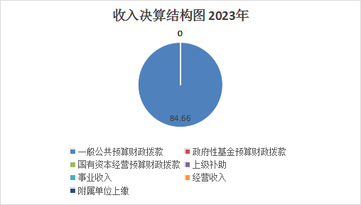 2023年本年收入合计84.66万元,其中:一般公共预算财政拨款收入84.66万元,占100%;政府性基金预算财政拨款收入0万元,占0%;国有资本经营预算财政拨款收入0万元,占0%;上级补助收入0万元,占0%;事业收入0万元,占0%;经营收入0万元,占0%;附属单位上缴收入00万元,占0%;其他收入0万元,占0%。
