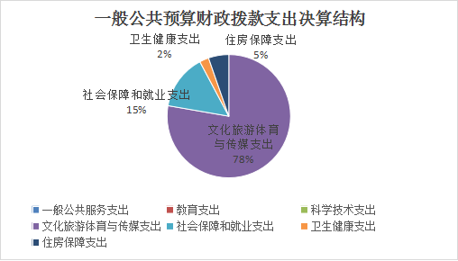 2023年一般公共预算财政拨款支出84.66万元,主要用于以下方面:一般公共服务支出0万元,占0%;教育支出0万元,占0%;科学技术支出0万元,占0%;文化旅游体育与传媒支出65.80万元,占77.72%;社会保障和就业支出12.28万元,占14.51%;卫生健康支出2.06万元,占2.43%;住房保障支出4.51万元,占5.34%。