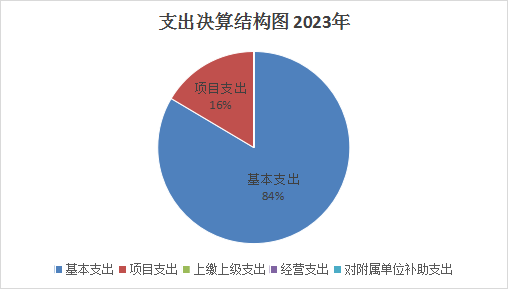 2023年本年支出合计84.66万元,其中:基本支出70.71万元,占83.52%;项目支出13.95万元,占16.48%;上缴上级支出0万元,占0%;经营支出0万元,占0%;对附属单位补助支出0万元,占0%。