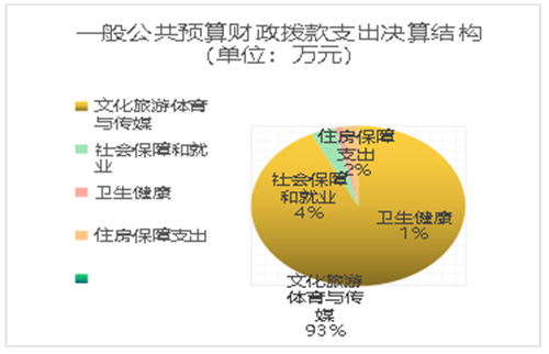 文化旅游体育与传媒支出331.8万元,占93%;社会保障和就业支出13.43万元,占4%;卫生健康支出3.86万元,占1%;住房保障支出8.41万元,占2%。