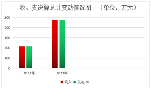 2023年度收入为476.59万元(含上年结转155.11万元)、支出总计为472.42万元,结转4.17万元。与2022年度相比,收入增加263.06万元,增长123%、支出增加258.89万元,增长121%。主要变动原因是基础设施建设及其他大型体育竞赛赛事增加。
