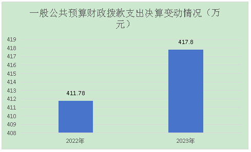 2023年度一般公共预算财政拨款支出417.8万元,占本年支出合计的100%。与2022年度相比,一般公共预算财政拨款支出增加6.02万元,增长1.46%。主要变动原因是有两名人员新进。