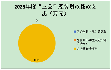 2023年度“三公”经费财政拨款支出决算中,因公出国(境)费支出决算0万元,占0%;公务用车购置及运行维护费支出决算0万元,占0%;公务接待费支出决算0.09万元,占100%。具体情况如下: