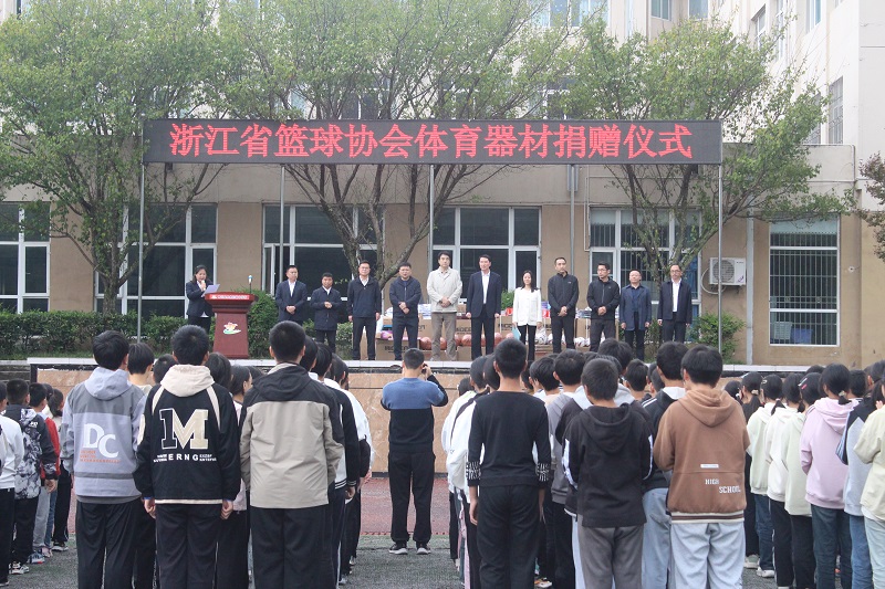 捐赠仪式上,浙江篮协向木鱼中学捐赠了篮球及训练服、足球及排球等价值5万元的体育器材。
