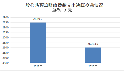 2023年度一般公共预算财政拨款支出2601.15万元,占本年支出合计的100%。与2022年度相比,一般公共预算财政拨款支出减少248.05万元,下降8.7%。主要变动原因是项目资金减少。
