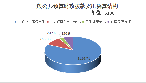 2023年度一般公共预算财政拨款支出2601.15万元,主要用于以下方面:一般公共服务支出2126.71万元,占比81.8%;社会保障和就业支出253.06万元,占9.7%;卫生健康支出70.48万元,占2.7%;住房保障支出150.90万元,占5.8%。