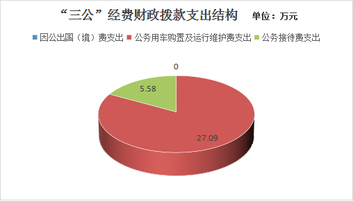 2023年度“三公”经费财政拨款支出决算中,因公出国(境)费支出决算0万元,占0%;公务用车购置及运行维护费支出决算27.09万元,占82.9%;公务接待费支出决算5.58万元,占17.1%。具体情况如下: