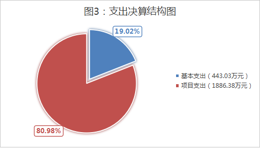 2023年度本年支出合计2329.4万元,其中:基本支出443.03万元,占19.02%;项目支出1886.38万元,占80.98%;上缴上级支出0万元,占0%;经营支出0万元,占0%;对附属单位补助支出0万元,占0%。
