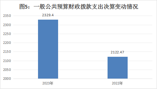 2023年度一般公共预算财政拨款支出2329.4万元,占本年支出合计的100%。与2022年度相比,一般公共预算财政拨款支出增加206.93万元,增长9.75%。主要变动原因是增加新进人员、增加项目经费支出。