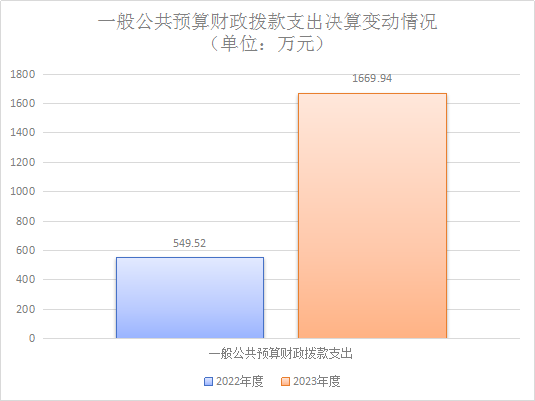 2023年度一般公共预算财政拨款支出1669.94万元,占本年支出合计的65.58%。与2022年度相比,一般公共预算财政拨款支出增加1120.42万元,增长203.89%。主要变动原因是青川县妇幼保健院与乔庄镇中心卫生院机构合并,人员、资产、财务等合并在一起,数据统一报送,原乔庄镇中心卫生院职能职责由我单位承担,故人员经费、日常公用经费、基本公共卫生服务、基本药物制度补助、2023年新增县级妇幼保健机构能力建设项目等各项拨款支出增加。