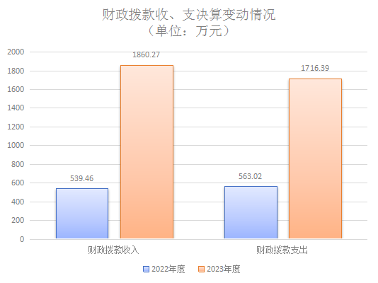 2023年度财政拨款收、支总计均为2017.81万元。与2022年度相比,财政拨款收、支均增加1280.61万元,增长173.71%。2023年度年初财政拨款结转和结余157.54万元,2023年度财政拨款收入1860.27万元,与2022年度539.46万元相比,财政拨款收入增加1320.81万元,增长244.84%;2023年度年末财政拨款结转和结余174.18万元,2023年度财政拨款支出1716.39万元,与2022年度563.02万元相比,财政拨款收入增加1153.37万元,增长204.85%。主要变动原因是青川县妇幼保健院与乔庄镇中心卫生院机构合并,被合并单位数据统一报送,原乔庄镇中心卫生院职能职责由本院承担,卫生院职能职责项目经费增加、人员增加,相应人员经费、日常公用经费增加,故本年收入、支出增加较大。