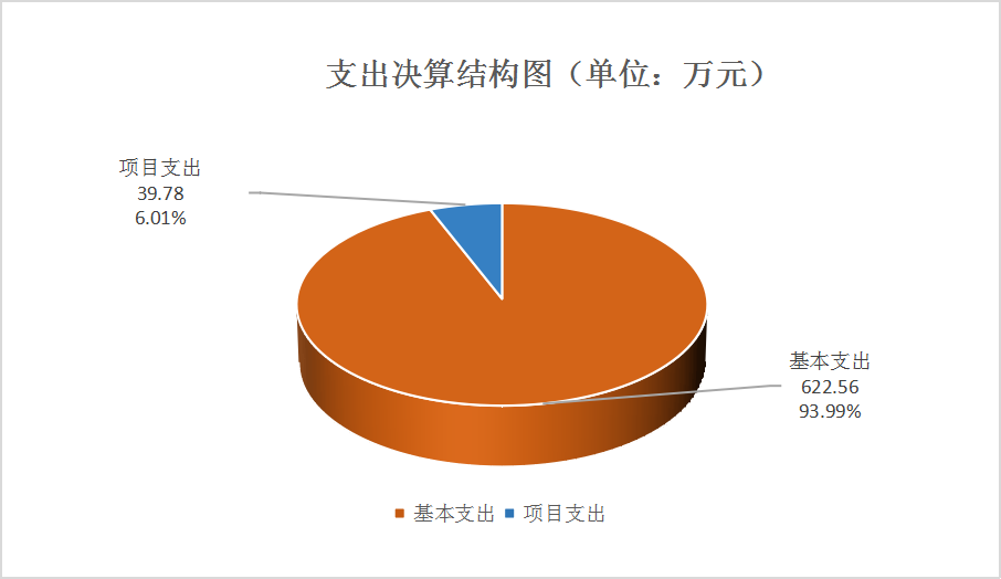 2023年度本年支出合计662.33万元,其中:基本支出622.56万元,占93.99%;项目支出39.78万元,占6%。