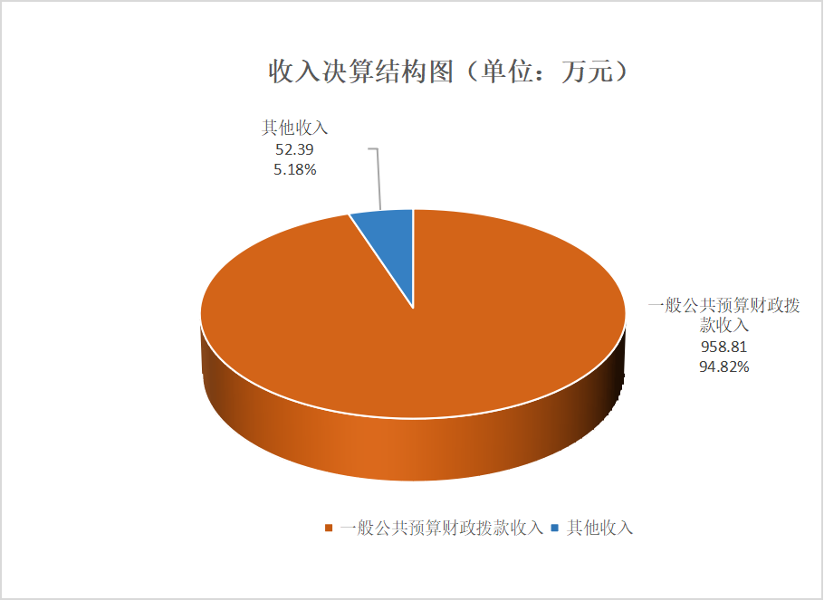 2023年度本年收入合计1011.21万元,其中:一般公共预算财政拨款收入958.81万元,占94.81%;其他收入52.39万元,占5.18%。
