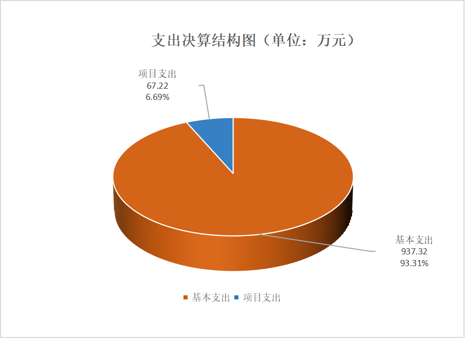 2023年度本年支出合计1004.54万元,其中:基本支出937.32万元,占93.3%;项目支出67.22万元,占6.69%。