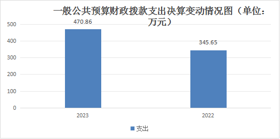2023年度一般公共预算财政拨款支出470.86万元,占本年支出合计的100%。与2022年度相比,一般公共预算财政拨款支出增加125.21万元,增长36.22%。主要变动原因是2023年新录取4名人员,人员增加,以及全县机关事业单位人员调出及退休人员数量增加,存在职业年金记实资金。