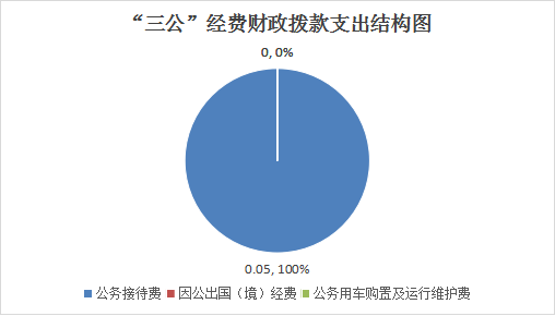 2023年度“三公”经费财政拨款支出决算中,因公出国(境)费支出决算0万元,占0%;公务用车购置及运行维护费支出决算0万元,占0%;公务接待费支出决算0.05万元,占100%。具体情况如下:
