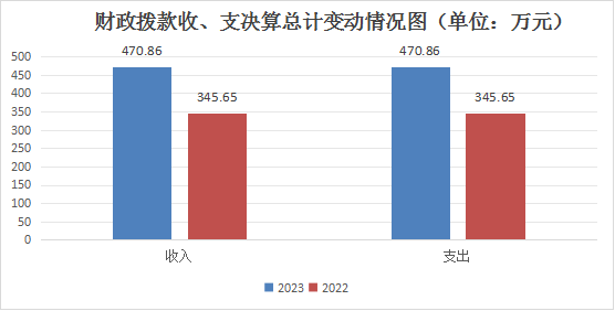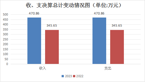 2023年度收入总计470.86万元,支出总计470.86万元。与2022年相比,收入总计增加125.21万元,增长36.22%,支出总计增加125.21万元,增长36.22%。主要变动原因是: