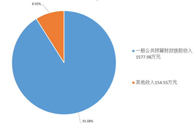 2023年度本年收入合计1732.53万元,其中:一般公共预算财政拨款收入1577.98万元,占91.07%;其他收入154.55万元,占8.92%