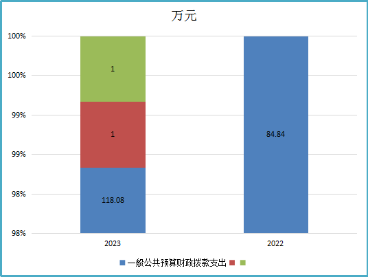 2023年度一般公共预算财政拨款支出118.08万元,占本年支出合计的59.25%。与2022年度相比,一般公共预算财政拨款支出增加33.24万元,增长39.18%。主要变动原因是增加公共服务岗1人,正常人员调资财政补助有增加、支出人员经费同时增加、保险增加,上年财政收回补助未支付今年支付。