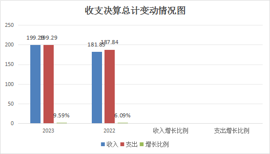 2023年度收入总计199.29万元,支出总计199.29万元,与2022年相比收入增长17.44万元,增长9.59%,支出增长11.45万元,增长6.09%。收入主要变动原因是增加应岗1人、正常调资进级、上年财政收回补助年初增加、基础绩效奖全部计入保险基数,单位保险部分预算增加;支出主要变动原因是正常人员调资财政补助有增加、支出人员经费同时增加、保险增加,上年财政收回补助未支付今年支付。