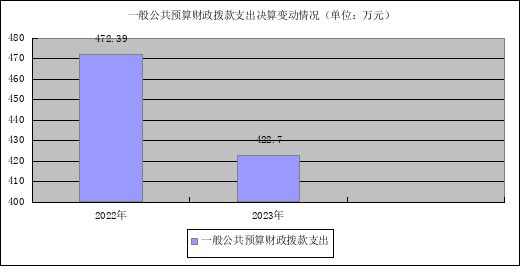 2023年度一般公共预算财政拨款支出422.7万元,占本年支出合计的57.24%。与2022年度相比,一般公共预算财政拨款支出减少49.69万元,下降10.52%。主要变动原因是项目经费支出减少。