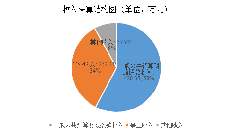 2023年度本年收入合计730.5万元,其中:一般公共预算财政拨款收入420.35万元,占57.54%;事业收入252.23万元,占34.52%;其他收入57.92万元,占7.92%