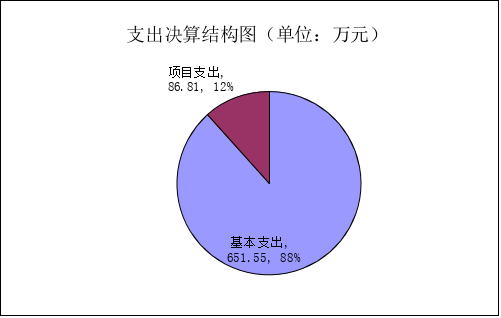 2023年度本年支出合计738.35万元,其中:基本支出651.55万元,占88.24%;项目支出86.81万元,占11.75%。
