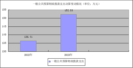 2023年度一般公共预算财政拨款支出152.33万元,占本年支出合计的61.96%。与2022年度相比,一般公共预算财政拨款支出增加15.92万元,增长11.67%。主要变动原因是人员增加人员经费及日常公用经费支出增加。