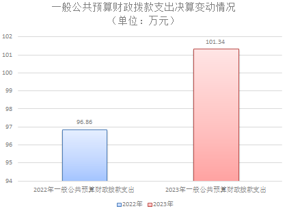 2023年度一般公共预算财政拨款支出101.34万元,占本年支出合计的48.25%。与2022年度相比,一般公共预算财政拨款支出增加11.86万元,增长3.68%。主要变动原因是人员经费增加。