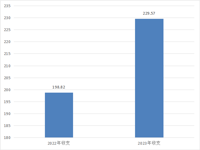 2023年度收、支总计均为229.57万元。与2022年度相比,收、支总计各增加30.75万元,增长15.47%。主要变动原因是财政拨款收入增加,事业收入增加。