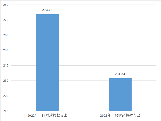 2023年度一般公共预算财政拨款支出231.53万元,占本年支出合计的42.52%。与2022年度相比,一般公共预算财政拨款支出减少42.2万元,下降15.42%。主要变动原因是退休人员去世、在职人员退休,基本支出减少,项目资金较上年减少。