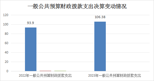 2023年度一般公共预算支出决算数为106.38,完成预算100%。其中: