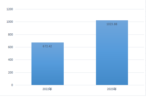 2023年度收、支总计均为1023.88万元。与2022年度相比,收、支总计各增加351.46万元,增长52.27%。主要变动原因是学校布局调整后师生人数增加。